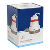 | Item | Europump model | V | Flow l/min - Max | Flow l/min - with 2m head | Current draw A | Max head m | Base Ø mm | Height mm | Hose adaptor Ø mm |