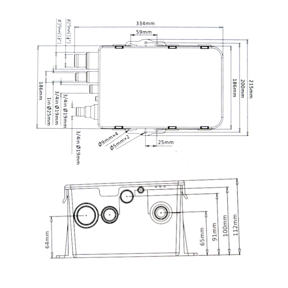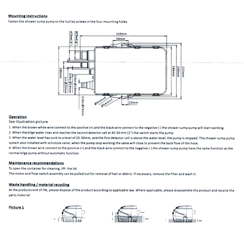 750GPH Shower Sump and Pump 12V/24V multiport drainage system