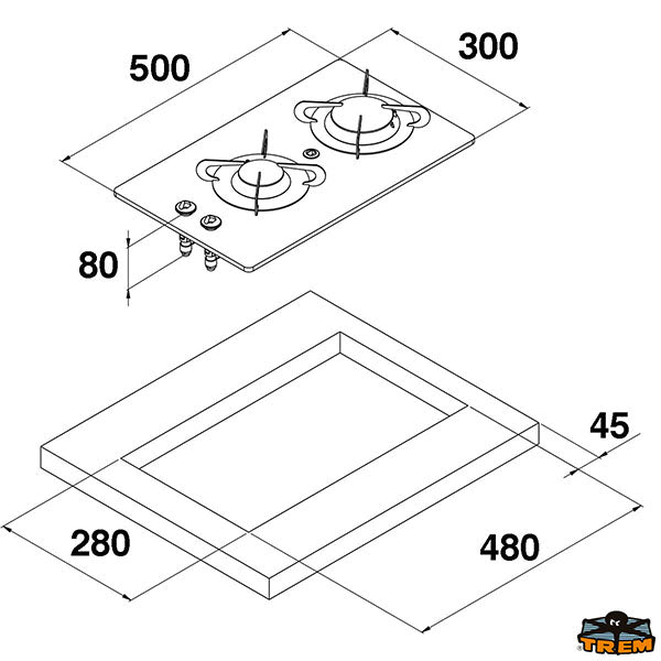 Rectangular glass top 2 burners SR model PV1357 - Fires 2 - CAN model PV1357 - Watts 1000+2000 [Z0800357]
