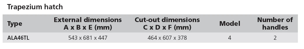 VETUS ALTUS deck hatch trapezium model (ALA46TL)