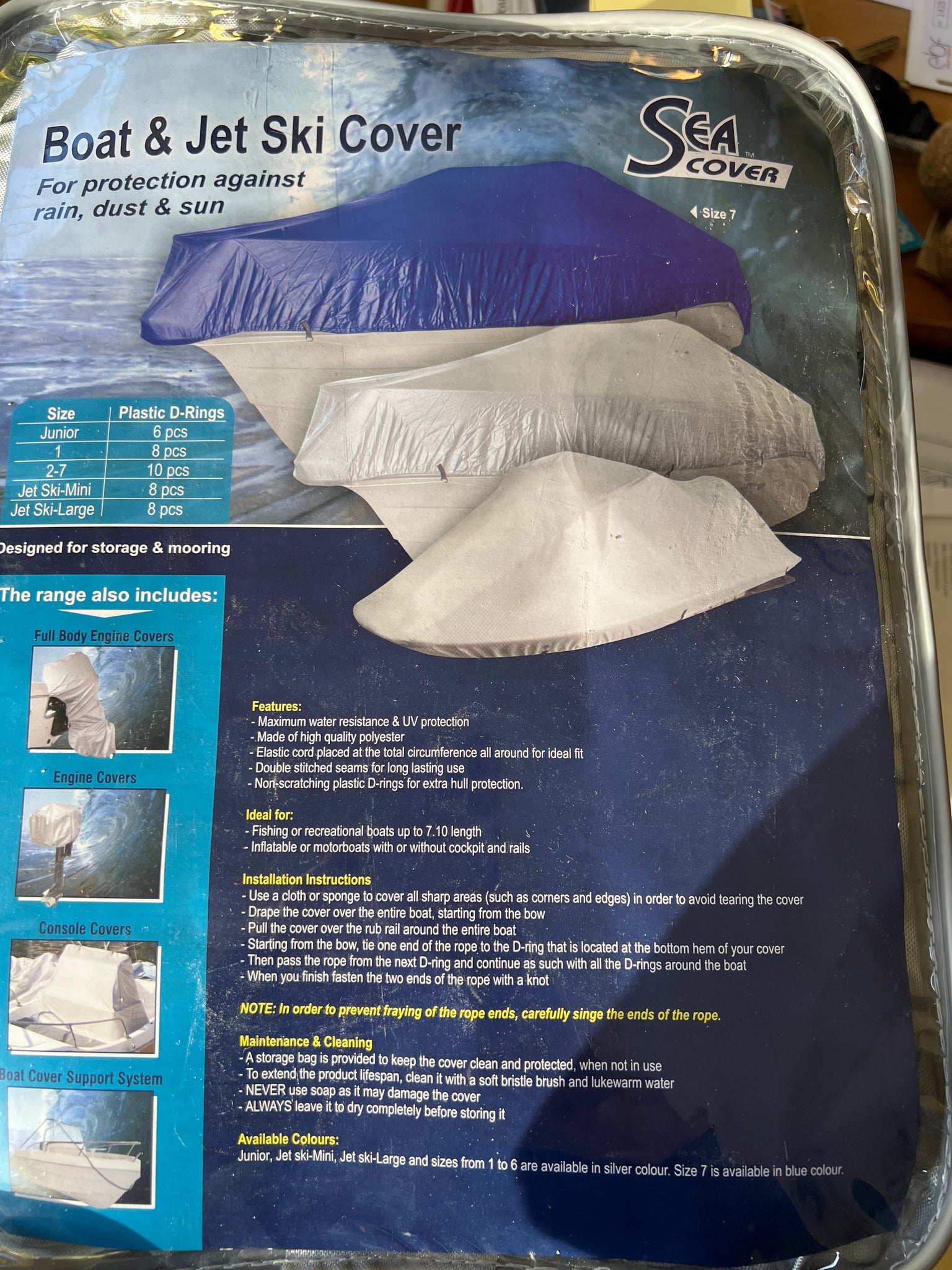 The Silver Boat Cover is ideal to cover and protect your boat against rain, dust and sun. It combines high construction standards with high quality materials, and is available in several sizes depending on the boat’s dimensions. This cover is described as the Jet ski size code 57324 made of extra strong PA coated Polyester 420D for maximum water resistance and silver coloured. It features an elastic cord all round for an ideal fit and double stitched seams for long lasting use. Additionally, they have non-scratching plastic D-rings for extra hull protection while fixing.