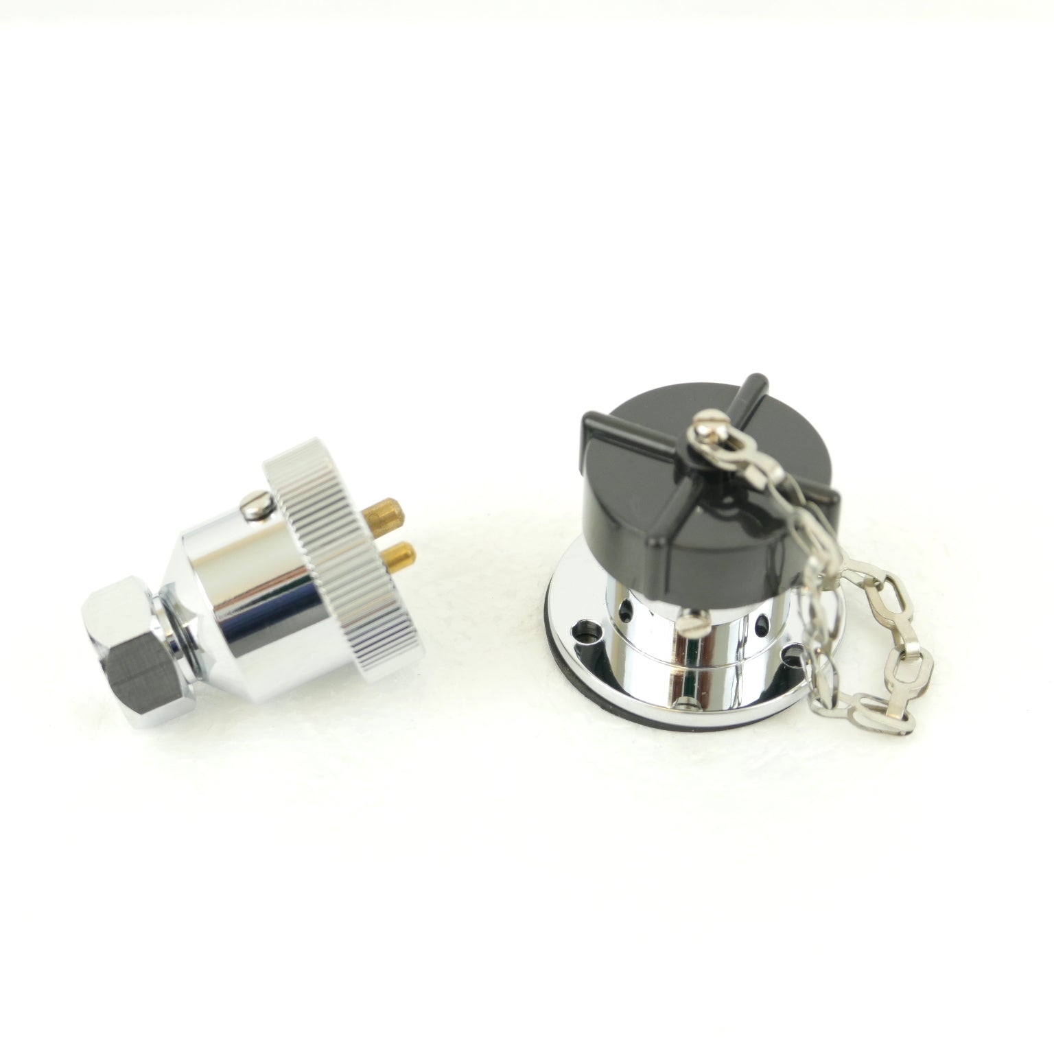 - Black screw on plastic cap, with retaining stainless steel chain, for when plug is not in use.