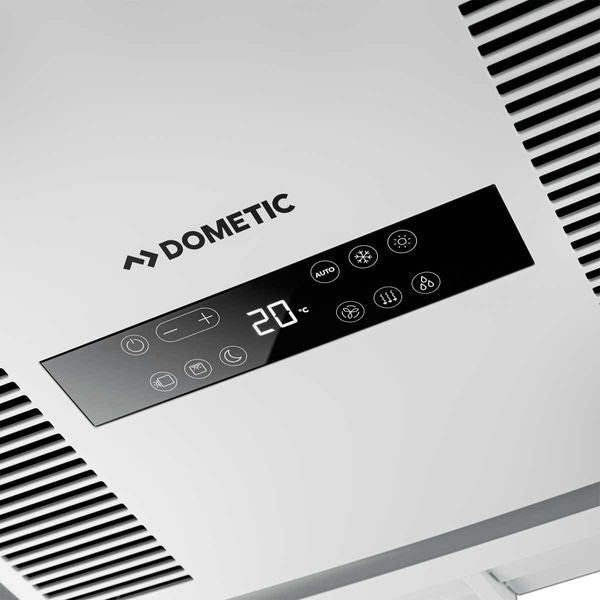 Dometic FreshJet FJX ADBD air distribution box featuring integrated electronic controls and LED lights. This elegant air distribution unit blends in nicely with modern motorhome interiors. It quietly and efficiently moves the air in two directions, front and back. Simply use the flush-mounted touch control display to set the desired temperature and blower speed – and enjoy unforgettable moments in your home away from home. The integrated LEDs radiate a warm and soft ambient light.