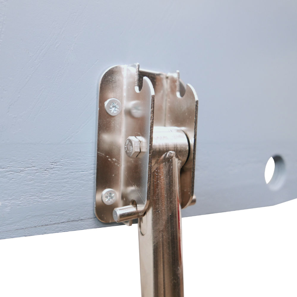 Construction: Marine Grade Stainless Steel tubes, and pneumatic wheels. Includes fixing bolts.