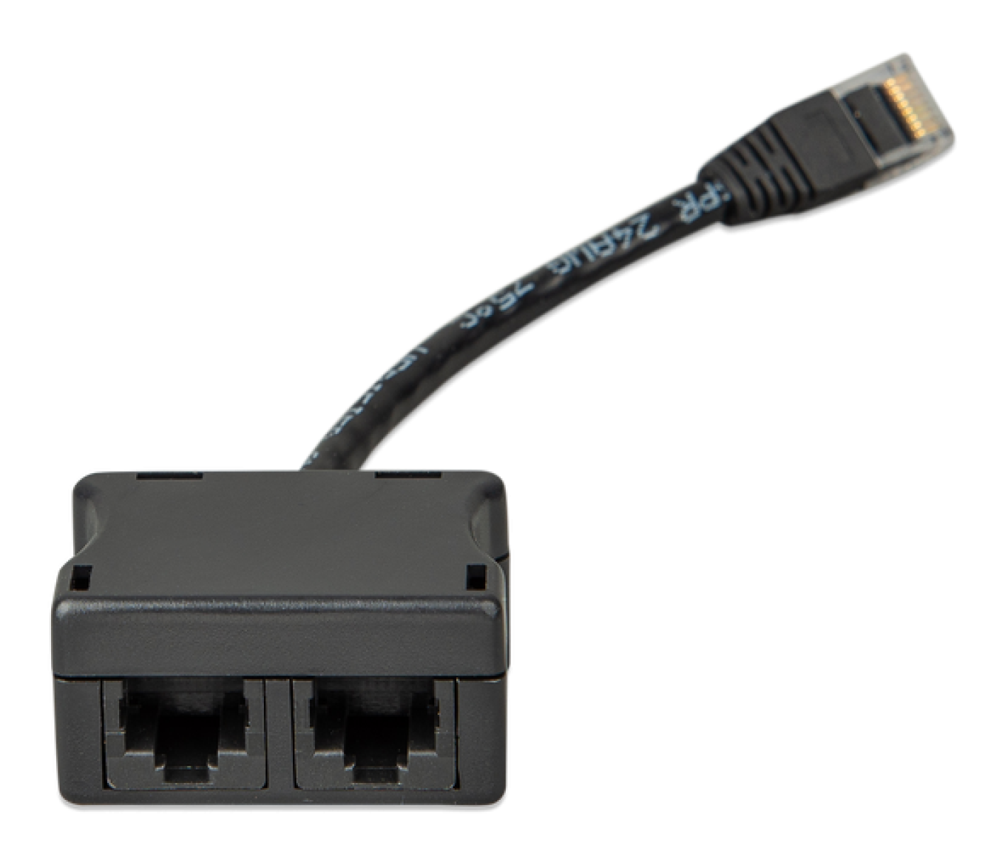 RJ45-splitter 1xRJ45 male/15cm cable/2xRJ45 female - ASS030065510 - This splitter is used to connect the MultiPlus 500VA - 1600VA range in parallel and 3 phase configurations, or in other installations where multiple VE.Bus ports are required.