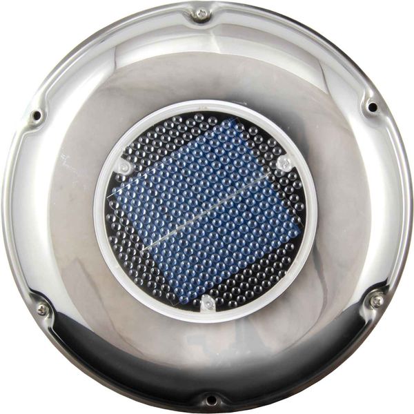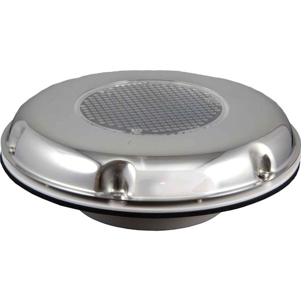 Solar powered fan vent with clear plastic lens and rechargeable battery with on/off switch. Vent cut-out size 120mm.