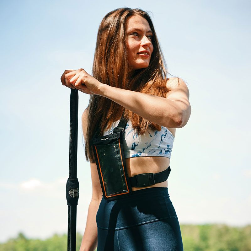Full speed ahead: Whether on an SUP, skis or rollerskates! – the chest bag follows every track. Thanks to the high-tech material, the smartphone remains touch-enabled: a short tap on the display and the wild ride is immediately recorded. There are no limits to the areas of application, the bag goes to every limit and lets no speck of dust, raindrop, or snowflake inside. And thanks to the magnetic belt fastener, the bag is quick and easy to put on.