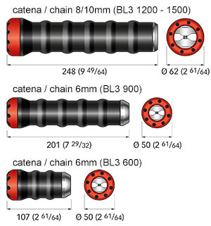 | CHAIN | 6 mm | 6 mm | 8 mm | 8 mm | 5/16" | 5/16" | 10 mm | 3/8" |