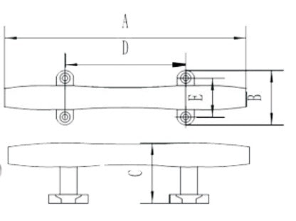 Hollow Base Cleat, 316 Stainless Steel, 200mm