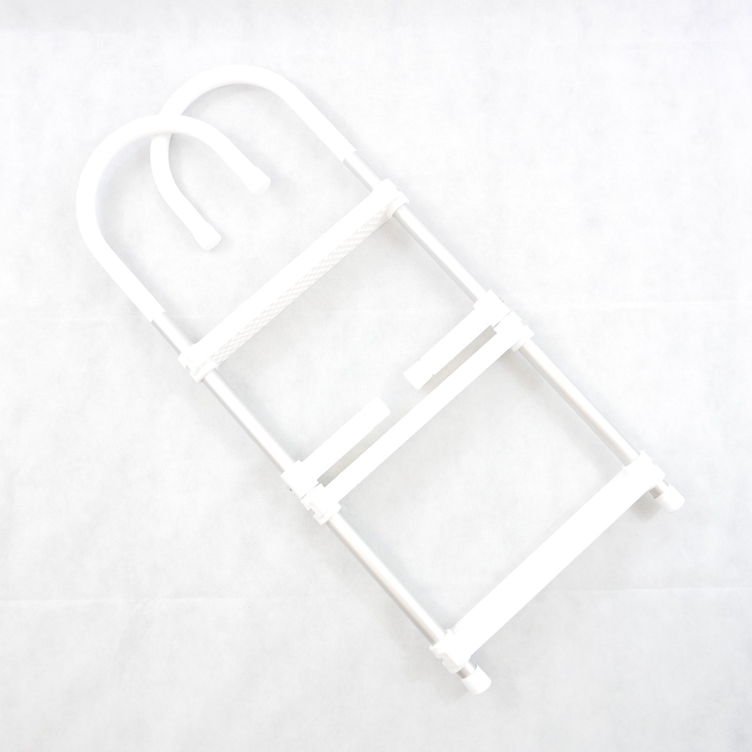A portable hook-over aluminium boarding ladder with 3 anti-slip steps.