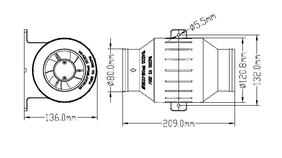 In-line Turbo Bilge Blower, 230CFM, Waterproof to IP66, 3″ Hose (Dia.)