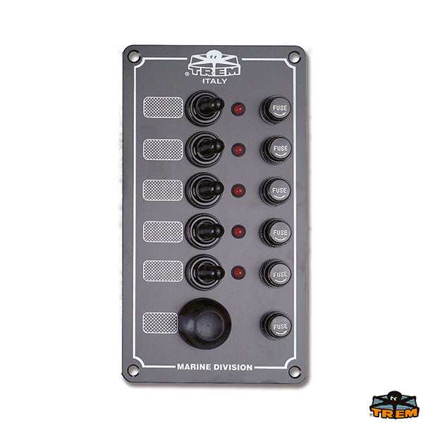 Electric panel 5 switches - No. Switches 3(ON-OFF)+1(ON-OFF-ON)+1(button)+ horn - Resettable fuses 3-10A 2-15A 1-5A - Hood L0636007 [L0606000]
