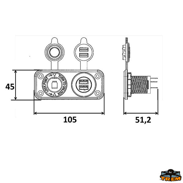 Digital voltmeter and double USB A+C socket black colour - Black colour - Amp. 1,5+2,5 - Volts 12-24 [L0624105]