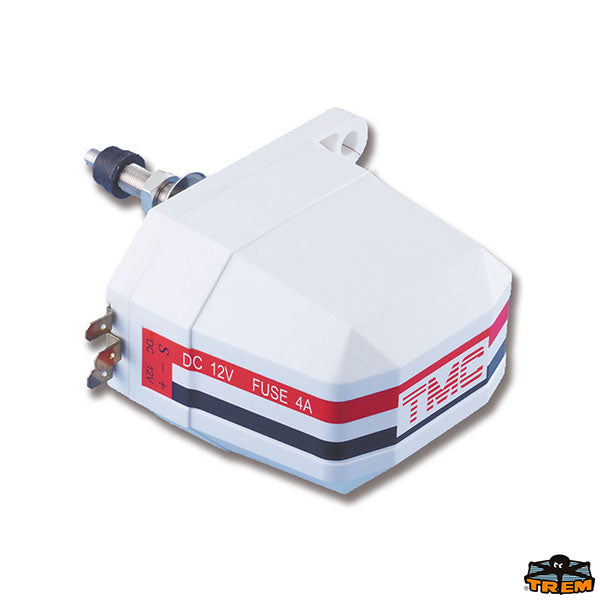 Waterproof housing. Self-parking. Angle 110°. Threading Ø 9 mm. Shaft Ø 6 mm. Shaft length 55 mm. 12V. 1A.12V TMC