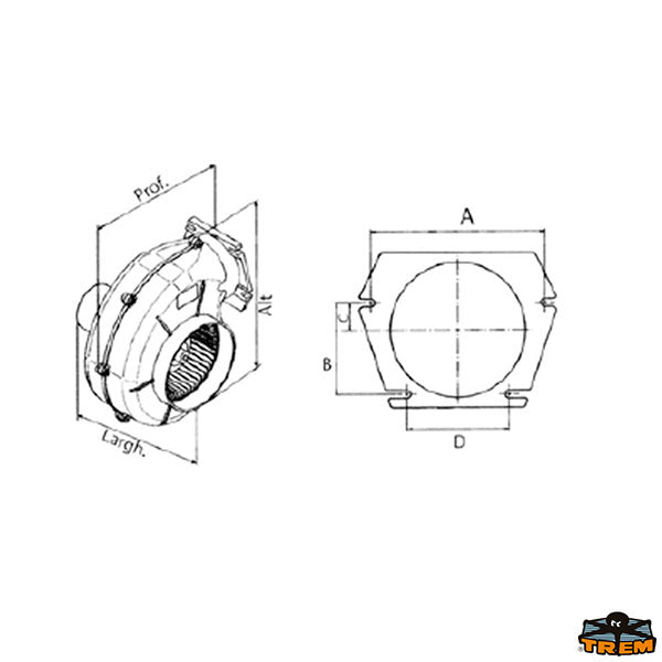 Blower 12V - Volts 12 - Amp 3,9 - Flow rate mc/hour 280 - Inlet external Ø mm75 - Outlet internal Ø mm 72 - H mm 200 - Depth 165 mm [L6412260]