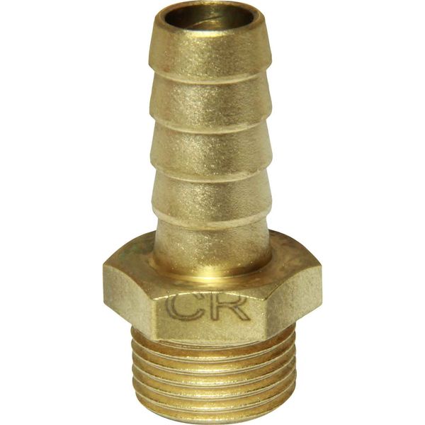 Maestrini straight hose tail fitting made from dezincification resistant brass (DZR), also known as CR brass which stands for corrosion resistant. This material is a brass alloy which prevents corrosion, caused by the loss of zinc in the fitting, making it suitable for exposure to sea water. This hose tail connects a 3/8" BSP threaded pipe to a 12mm hose connection.