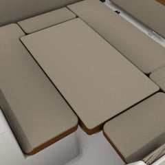 - Extra large u-shaped aft seating area, comfortably seats up to 8. Convertible to a large rear sunbathing platform.