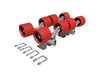 Eight non marking wobble rollers on heavy duty aluminium brackets fitted to a galvanised pivoting equaliser.