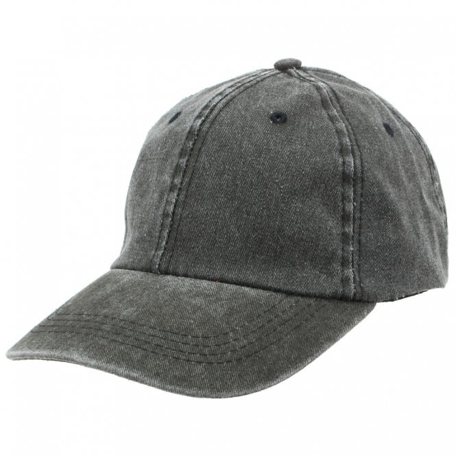 Pre-washed faded baseball cap with a curved peak, adjustable strap and brass adjuster buckle.