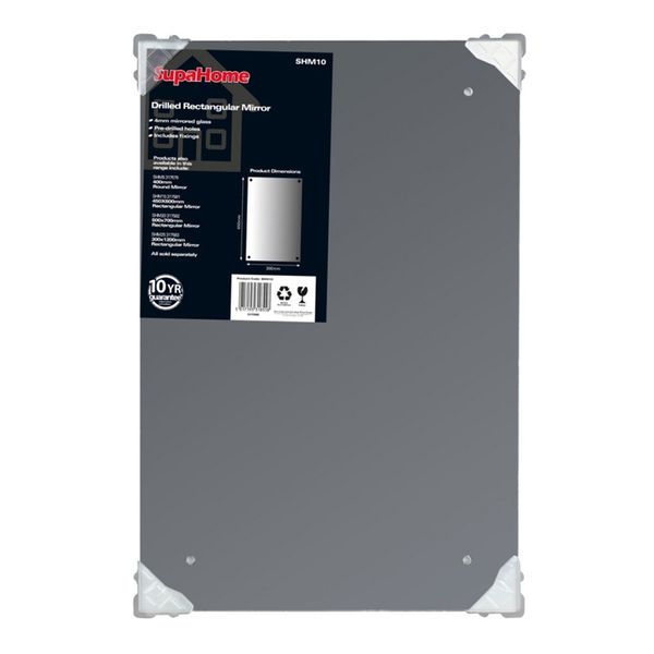 Rectangular Glass Mirror Including Fixings Pre-Drilled 255 x 355 x 4mm - 347834