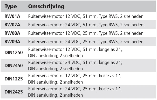 VETUS wiper motor, 24 V, 50 mm, spindle with parallel end, 2 speed (RW02A)