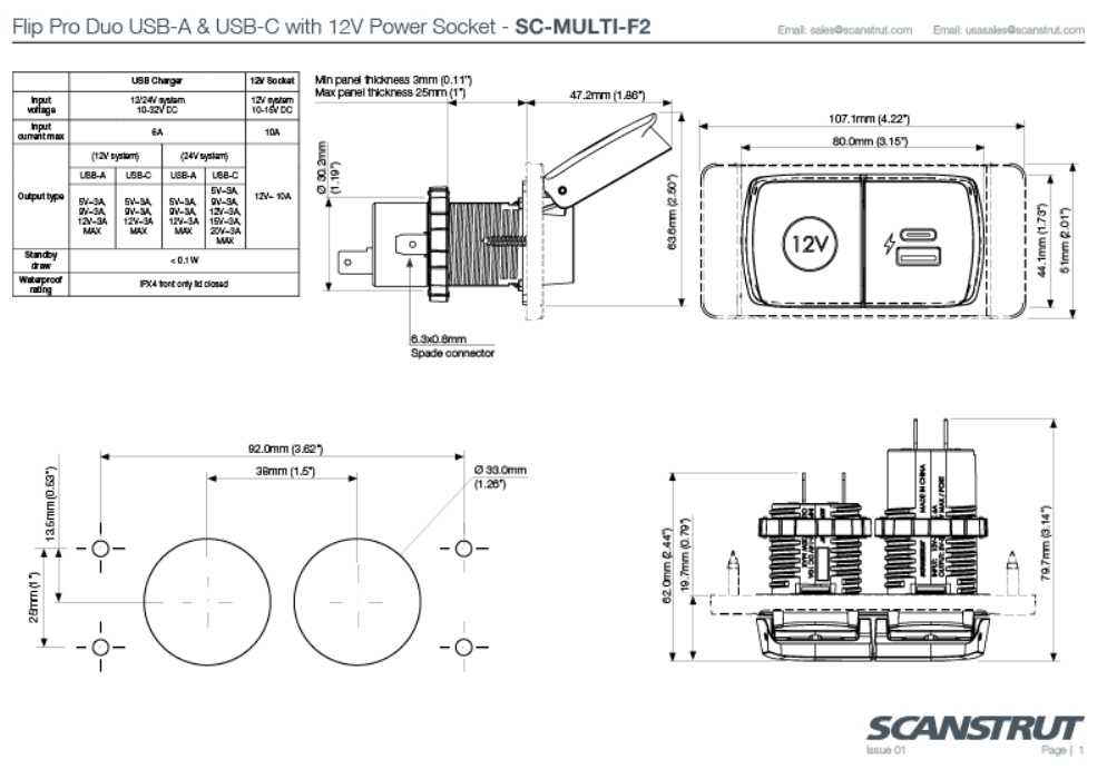 Scanstrut Flip Pro Multi - 12V, USB-A & C Socket (Front or Rear Fit)