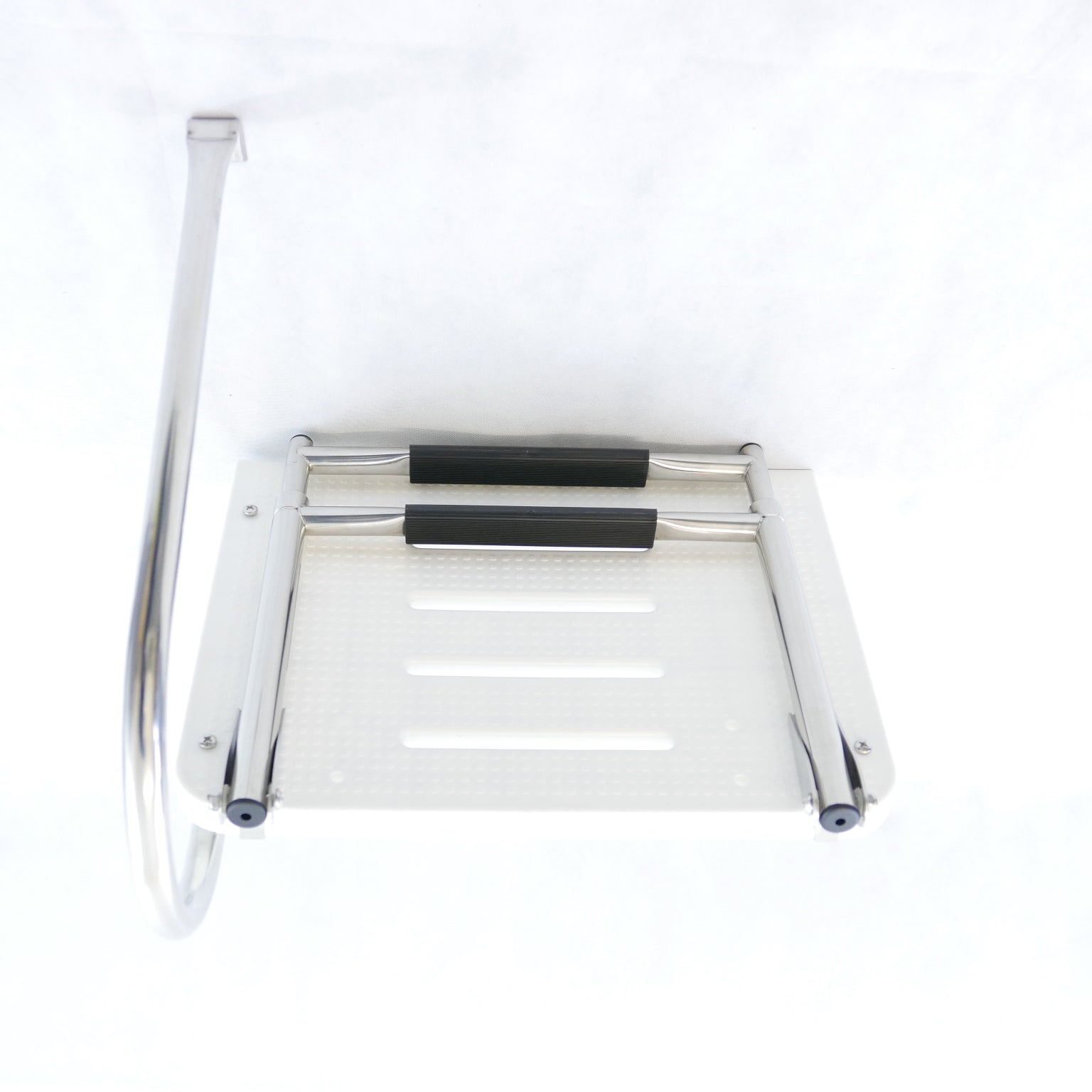 2 Step Telescopic Boarding Ladder folds up and over the platform for storage.