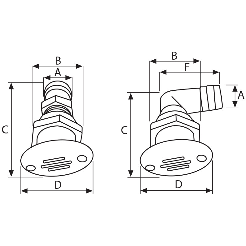 | Code | Description | Color | Description | F | ØA | C | D | ØB | E |
